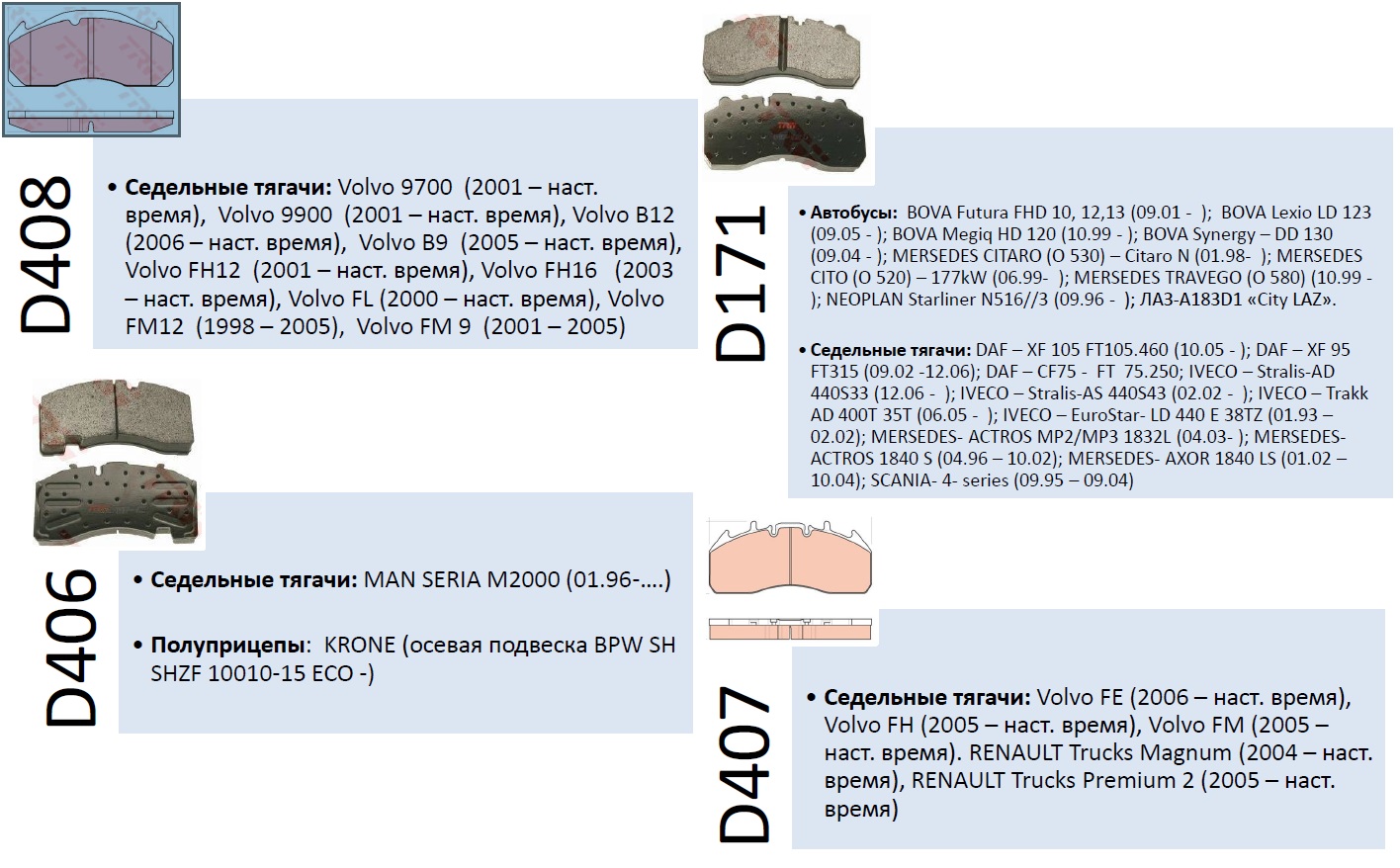 • соответствие требованиям Правил №13 и №90 ЕЭК ООН.;
