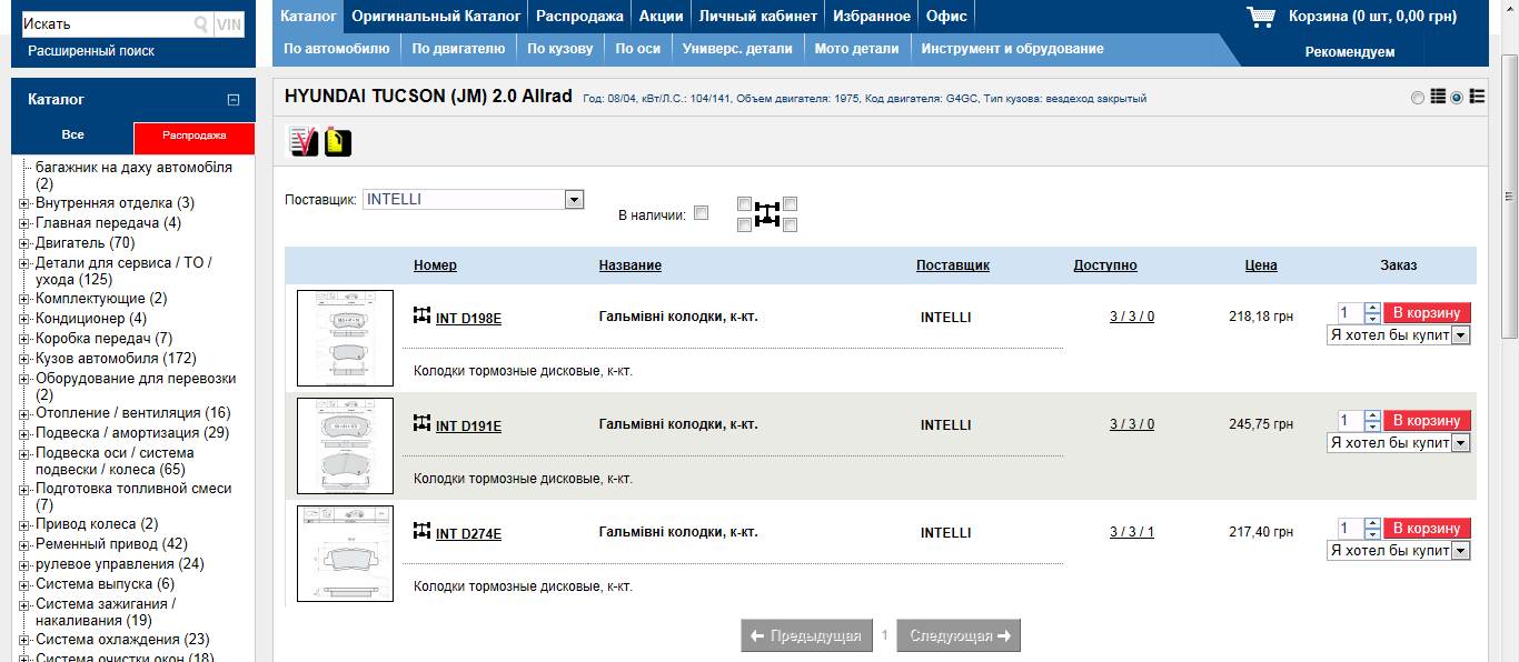 сообщить, что уже реализован функционал подбора тормозных колодок INTELLI по