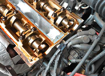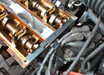 Снятие: демонтируйте резервуар жидкости ГУР (при этом можно не отсоединять шланги), ремень привода навесных агрегатов, расширительный бачок системы охлаждения (при этом можно не отсоединять шланги), шкив насоса охлаждающей жидкости, верхнюю и нижнюю части защитного кожуха привода ГРМ, переднюю опору двигателя. Снимите среднюю часть кожуха, привод ГРМ, выкрутите свечи зажигания, тепловой кожух, шланг вентиляции картера и крышку клапанного механизма (при этом обратите внимание на последовательность отворачивания болтов: по направлению снаружи-внутрь, крест-накрест).
