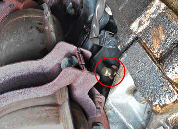 3. установите фиксатор коленчатого вала - OE (303-574). Для этого выкрутите пробку из блока (Рис. 3 и 4).