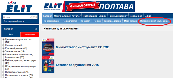 Для этого заходите в раздел «Инструмент и оборудование» и кликайте на нужный вам каталог .
