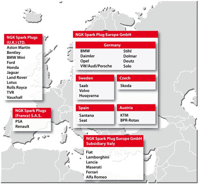 Основой этого успешного сотрудничества являются развивавшиеся многие годы отношения доверия между компанией NGK и её заказчиками заводской комплектации. Так, между первыми успехами в области европейской заводской комплектации в 80-е годы и нынешним лидирующим положением на рынке, заложены многолетние инновативные разработки и первоклассный сервис.