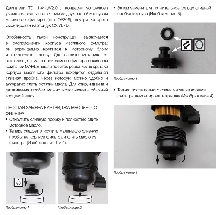 Замена картриджа масляного фильтра OX 787D в двигателях TDI Volkswagen