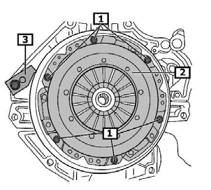 При затяжке болтов корзины сцепления помните, что момент затяжки – 15 Нм. На рисунке ниже изображена последовательность затяжки болтов.