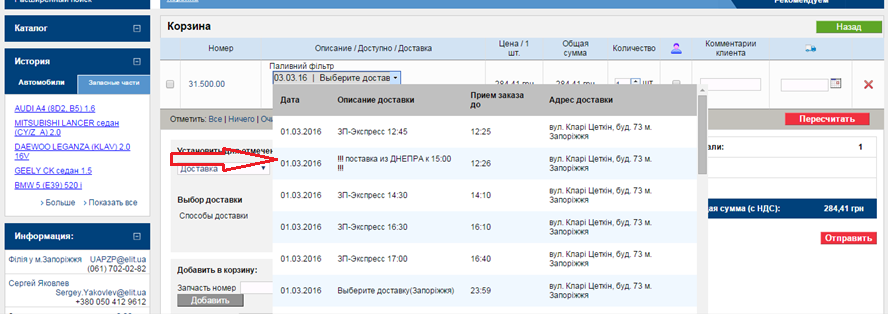 1 марта 2016Теперь, товар из склада в Днепропетровске вы сможете получать в тот же день! Если, нужный вам товар есть на складе в Днепропетровске, вы сможете заказать его оттуда и получить в тот же день, при условии размещения заказа до 12.30! Для этого, при выборе доставки, нужно выбрать "!!!Поставка из ДНЕПРА к 15.00!!!"