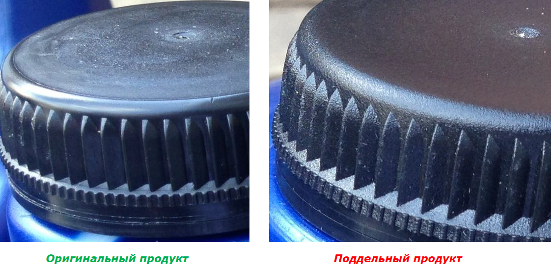 К сожалению, этот ассортимент не финальный и на рынках могут появляться все новые виды поддельной продукции. На данный момент, есть всего несколько менее заметных отличий оригинального продукта от поддельного, а именно (на примере 5 литровых канистр): 1. В оригинальном продукте край крышки отполированный до блеска. В поддельном продукте крышка имеет однородную структуру пластика сверху крышки и на боковой грани. См. фото ниже: В поддельном продукте на нижней части канистры имеются 3 выпуклые полоски расположенные очень близко друг к другу. В оригинальном продукте эти 3 полоски расположены более широко друг от друга. См. фото ниже: По наклейкам на канистрах (разные цветовые гаммы), нанесению кодов на канистрах, наличию или отсутствию QR-кодов отличить подделку от оригинала невозможно. Канистры продукции Total имеют те же отличия (разница только в цвете канистры). Хочется отметить, единственный гарантированный способ, который обезопасит и Вас и Ваших покупателей, это сотрудничество с официальными дистрибьюторами торговых марок elf и TOTAL. P.S.: На данный момент на рынке присутствует как минимум три варианта поддельной продукции: На примерах видны основные отличия канистр 5л. Ниже три вида подделок: как видно, по наклейкам они очень хорошего качества и отличить оригинал от подделок нереально. Кроме крайней левой канистры (надпись Evolution 700 Turbo Diesel написана совершенно другим шрифтом, а вязкость указана как low-40 (с английского переводится как «низкий-40»), вместо 10W40. |