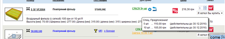 %возле цены на товар, просто наведите на него курсором мышки, и вы