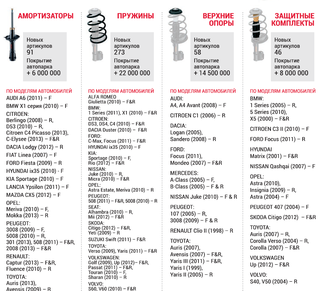 Некоторым из новых позиций амортизаторов присвоены