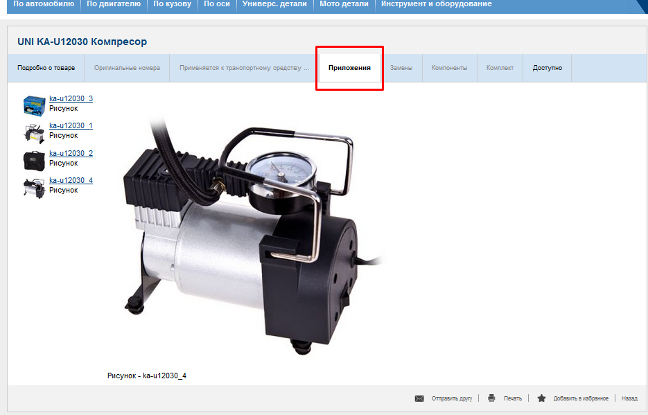 Описание каждой позиции содержит подробную информацию о товаре. Во вкладке «приложения» найдете больше фотографий комплектации и продукта с разных ракурсов