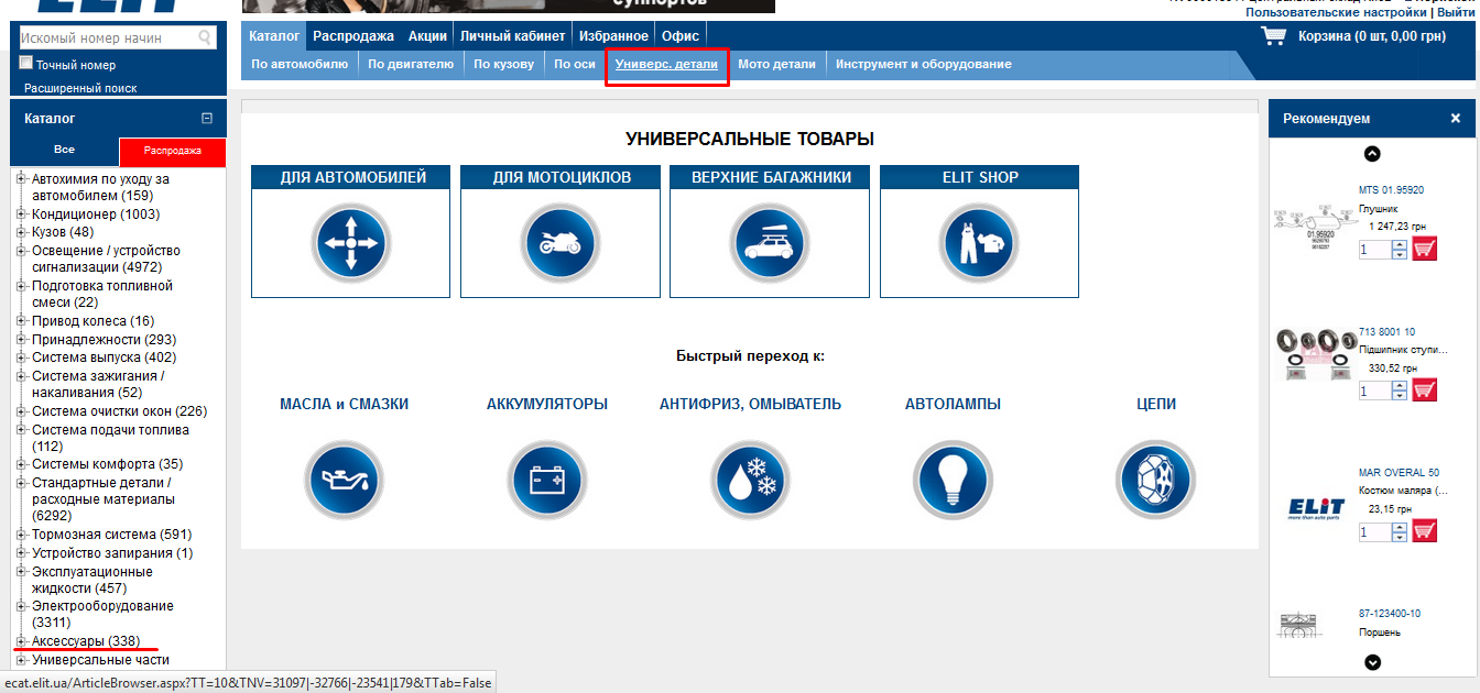 раздел очень просто. На домашней странице еСat зайдите в «Универсальные
