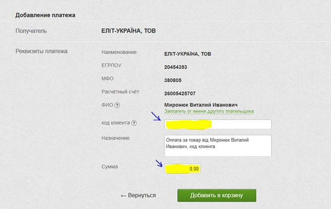 ВАЖНО: ваш код клиента и плательщик в системе Приват 24 должны совпадать. Если вы зарегистрированы, как DP00001010 Миронюк Виталий Иванович, то и платеж в Приват 24 должен быть оформлен со счета Миронюк Виталий Иванович