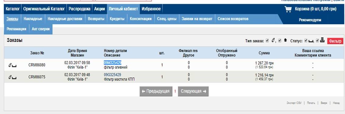 14 марта 2017Теперь, заказы по оригинальным позициям, отображаются в личном кабинете eСat.