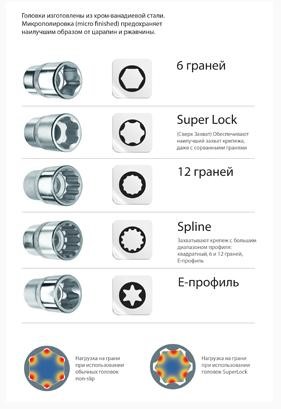 Surfacedrive / SuperLock – это усовершенствованный профиль 6гр. головок, который позволяет работать с поврежденными гранями ( когда одна или больше граней слизаны, и не дают головкам 6 и 12 гр. профиля плотно «схватить» болт/крепёж и выполнить работу). Также отсутствие острых граней повышает прочность головки так как снижается нагрузка на грани.