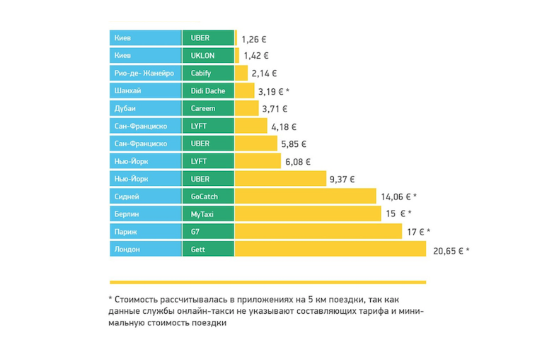 27 января 2018Сервисы для онлайн-такси по всему миру набирают популярность. К примеру, американский Uber является самым дорогим стартапом, в США с ним конкурирует Lyft, а на мировой арене — Didi Chuxing. В Украине одним из первых, а сегодня самым популярным местным сервисом является Uklon. Обозреватель AIN.UA подготовил материал на тему мировых онлайн-такси, разобрался, где и сколько стоит поездка, а также проследил особенности работы сервисов в разных странах.