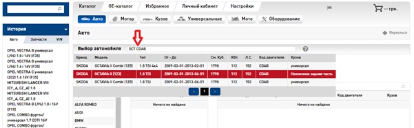 А можно вбить буквы мотора CDAB и добавить OCTAVIA или (OCT) и из предложенного списка выбрать необходимую модель.