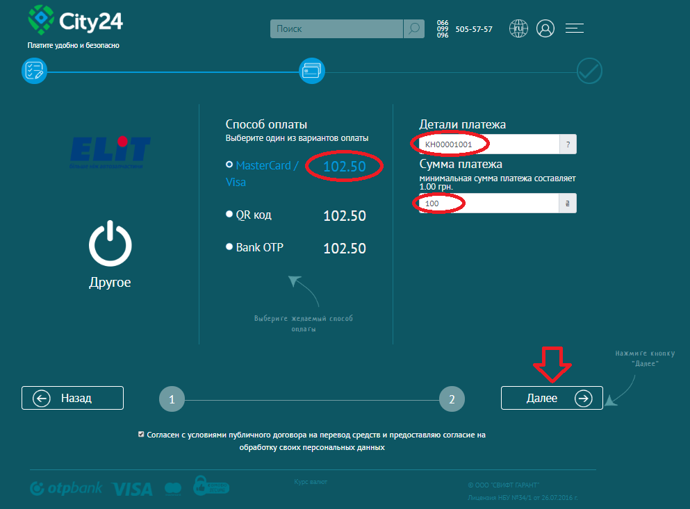После перехода на страницу оплаты необходимо ввести Ваш код клиента и сумму платежа. В колонке «Способ оплаты» сразу отразится сумма с учетом % банка.