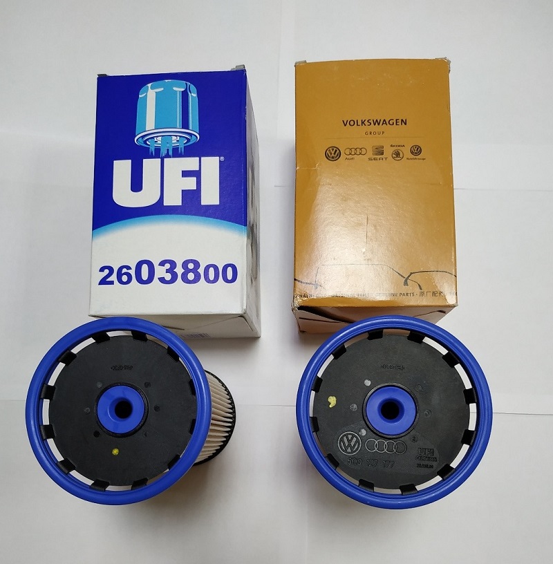 Топливный фильтр UFI (26.038.00) устанавливается на AUDI A3, Q2; SEAT Leon III; SKODA Kodiaq, Octavia III, Superb III; VOLKSWAGEN Beetle/Maggiolino, Golf Sportsvan, Golf VII, Jetta IV, Passat, Scirocco, Touran. Оригинальный номер 5Q0127177.