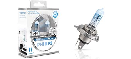 Автомобильные лампы Philips WhiteVision с эффектом яркого белого ксенонового света для головного освещения обеспечивают великолепную видимость в темное время суток. Лампы WhiteVision — это безупречное сочетание стиля и безопасности: яркость света достигает 4300 К. В наличии имеются модели WhiteVision H4, H7