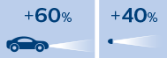 Чистый белый свет мгновенно рассеивают темноту, обеспечивая максимально комфортное вождение. Более длинный световой луч дает на 60 % больше света, что обеспечивает лучшую видимость на дороге, повышает безопасность и позволяет заранее предотвращать потенциально аварийные ситуации. Лучшее решение для ламп головного освещения.