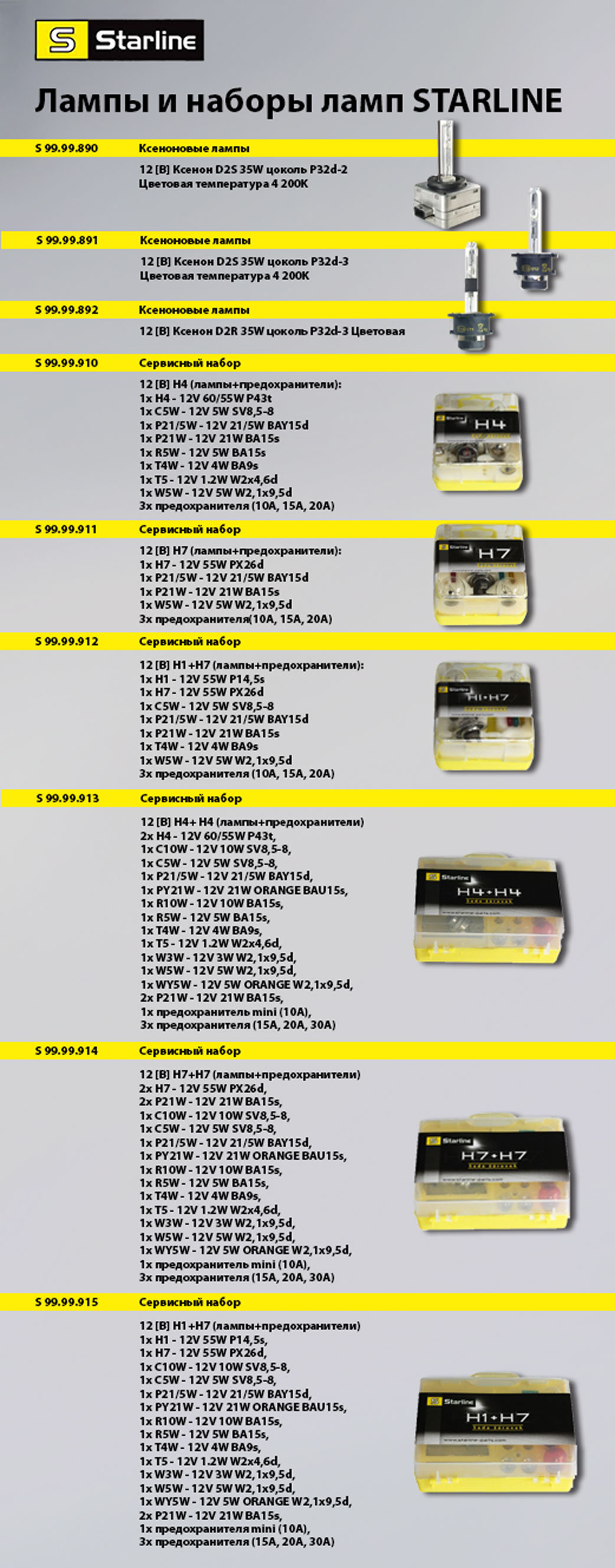 Наборы ламп и предохранителей STARLINE